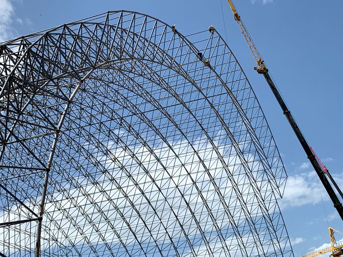 (2)网架加工前应对现场尺寸进行复测,确认无误后方可进行加工、安装;网架制作、运输、安装应遵守《空间网格结构技术规程》JGJ7-2010、《钢网架南京螺栓球节点》JG/T 10-2009、《钢网架南京螺栓球节点用高强度螺栓》 GB/T 16939-2016、《南京钢结构南京工程南京施工规范》 GB50755-2012、《南京钢结构南京工程施工质量验收标准》 GB50205-2020。